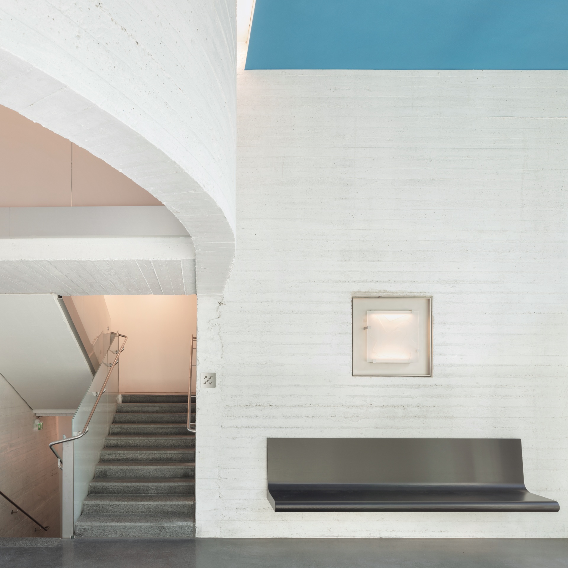Auloissa on Steven Hollin suunnittelema puupenkki, lasitaideteos ja kehys, jolla vedostettiin Fanny Tavastilan asukaslahjaksi annetut teokset.