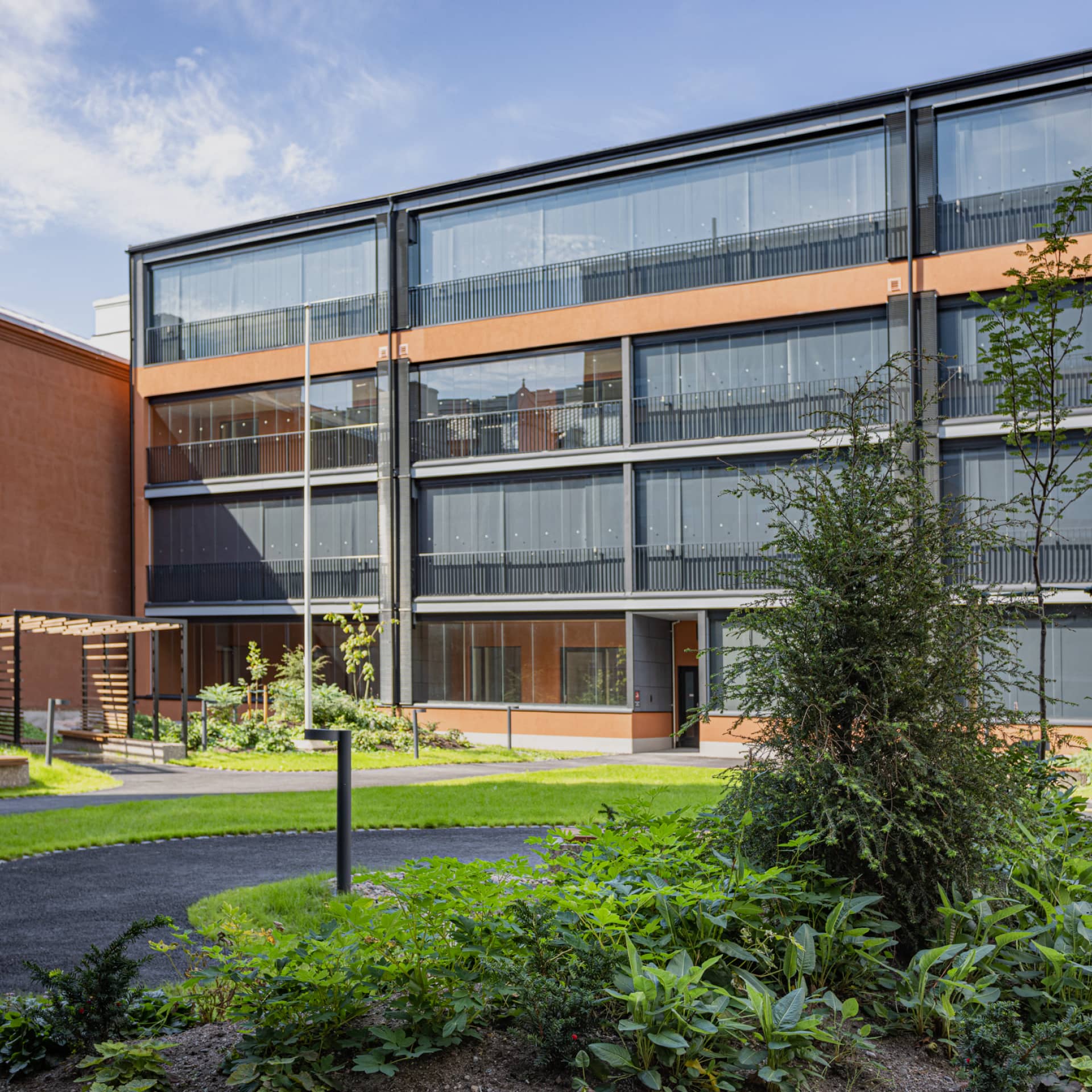 Universumissa voi nauttia puistomaisesta tunnelmasta omalla pihalla. Piazzahenkisen sisäpihan istutukset ja pylväsvalaistus huokuvat Etelä-Euroopan tunnelmaa. Ympäröivät talot rauhoittavat alueen ääniltä ja katseilta. Pergolalla ja riippumatolla varustettu sisäpiha onkin koko perheen keidas, jonka esteettömillä oleskelutiloilla on miellyttävää ulkoilla. Universumissa on pesupaikat polkupyörille ja myös lemmikkien tassuille.